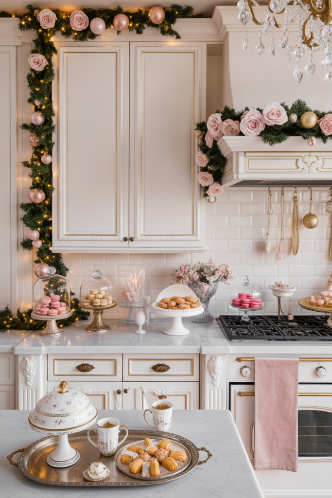 The Parisian Noël Kitchen theme captures the enchanting essence of a Parisian Christmas, blending timeless elegance with festive charm. Incorporating elements like delicate lace table runners, vintage French crockery, and accents of gold and deep red can transform your kitchen into a cozy yet sophisticated holiday haven. This decor idea belongs on your list because it exudes a unique blend of classic French sophistication and holiday warmth, creating an inviting and stylish space for Christmas gatherings.